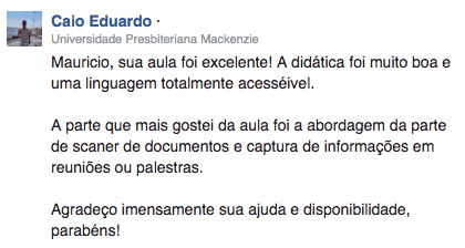 Todas as pessoas que precisam organizar a vida podem se beneficiar dessa aula. O Evernote é flexível para se adaptar aos mais diferentes atuações, processos e especificidades das profissões. Temos alunos da área médica, jurídica, administração, empreendedores, funcionários públicos, estudantes, professores, empresários, etc. Confira acima alguns dos depoimentos de nossos alunos.