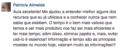 Já sou usuário do Evernote há algum tempo e foi bom poder agregar mais conhecimentos sobre a ferramenta e, principalmente, conhecer as suas diversas possibilidades.